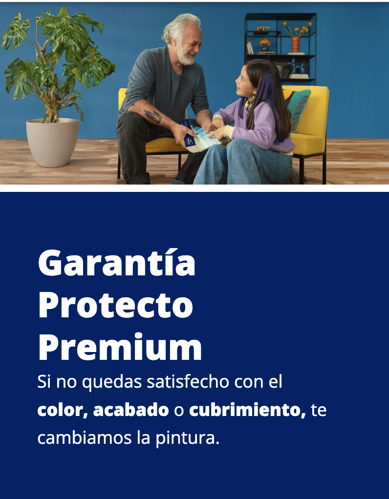 Si al pintar, el resultado del color, acabado o cubrimiento no es lo que esperabas, solicita el cambio dentro de los 60 días posteriores a la compra*.